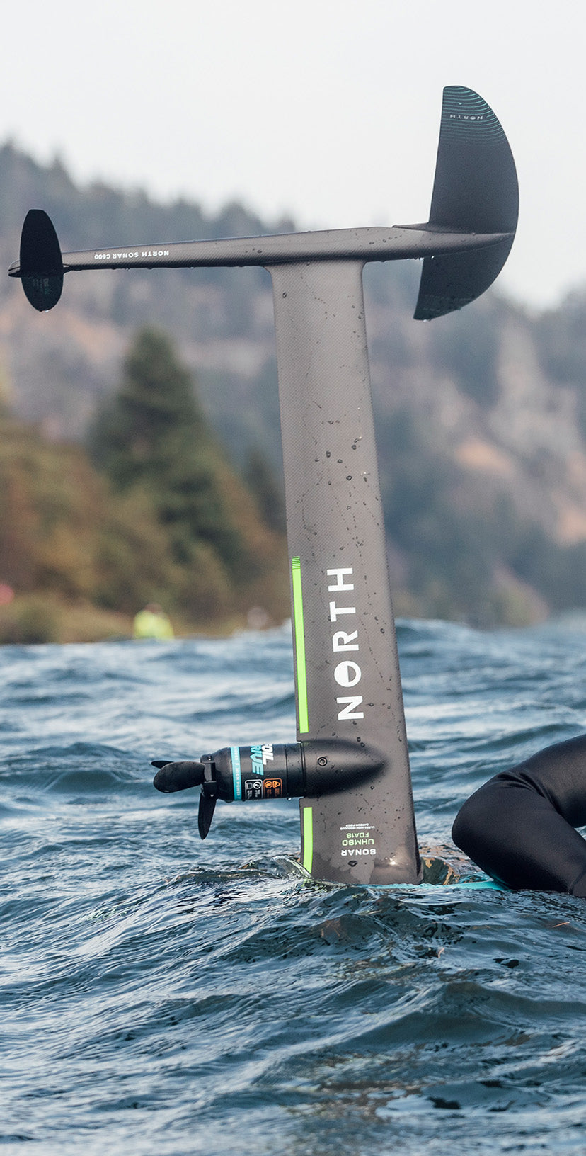 Note: The Motor Pod is in a fixed position on each mast and cannot be removed or changed. Fully internal wiring connects to the Foil Drive system (sold separately by Foil Drive). The Integrated Masts require the complete Foil Drive Kit to operate. Masts and Kits are available separately from Foil Drive. The Sonar Front Wing, Fuselage and Stabilizer are available separately from North.Β
